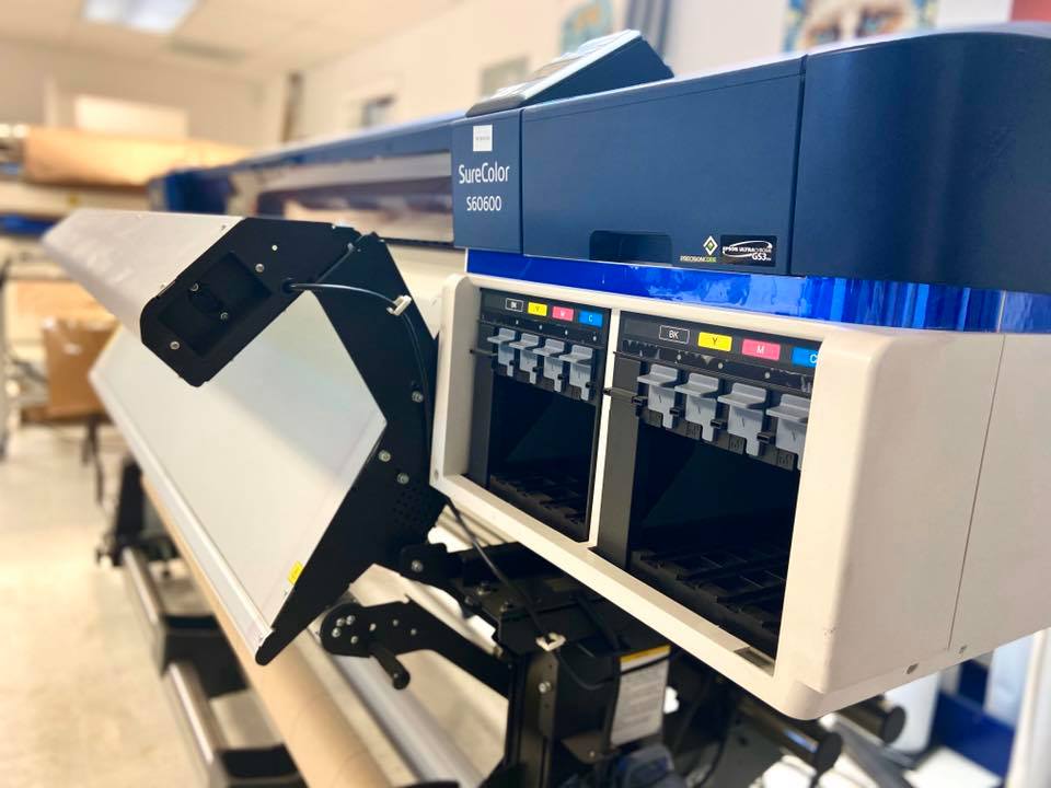 Our large format printers can accommodate prints up to 48″ wide. Rich full color prints for your sign displays. We offer a variety of media for print, including wall and floor media and even window perf or view-through. High-end cast vinyl and calendared vinyl are available for specific uses.